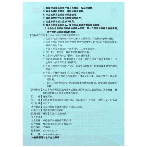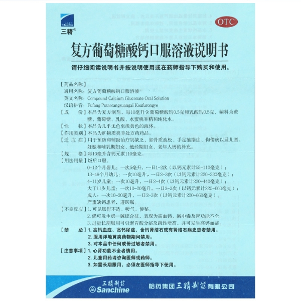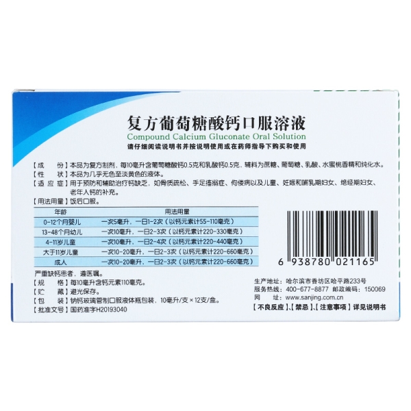 哈药三精 复方葡萄糖酸钙口服溶液 10ml*12支 补钙佝偻病缺钙