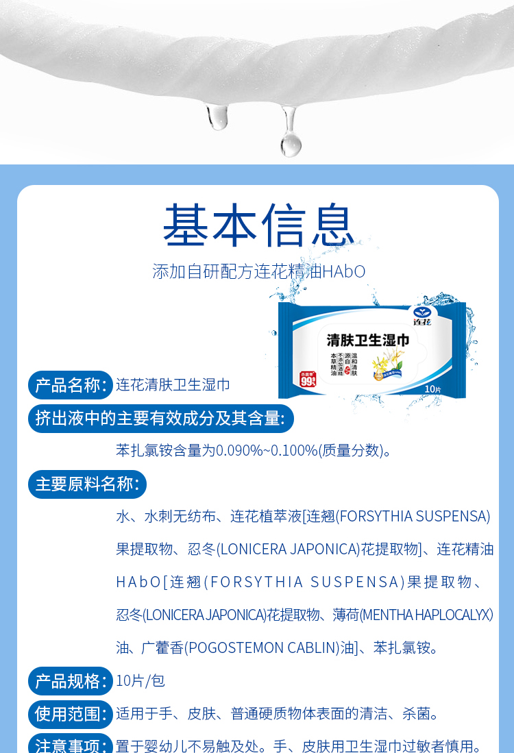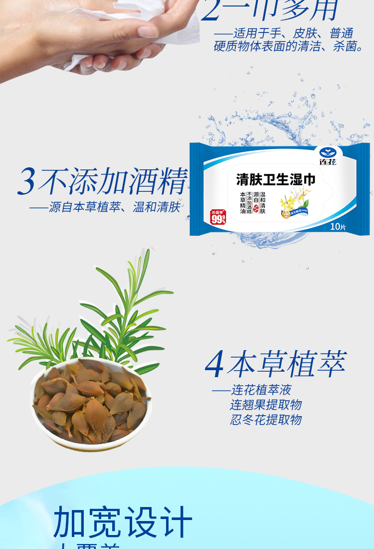 以岭 连花清肤卫生湿巾 10片/包 防护 抑菌防护 连花防护 新旧包装交替发货 连花健康