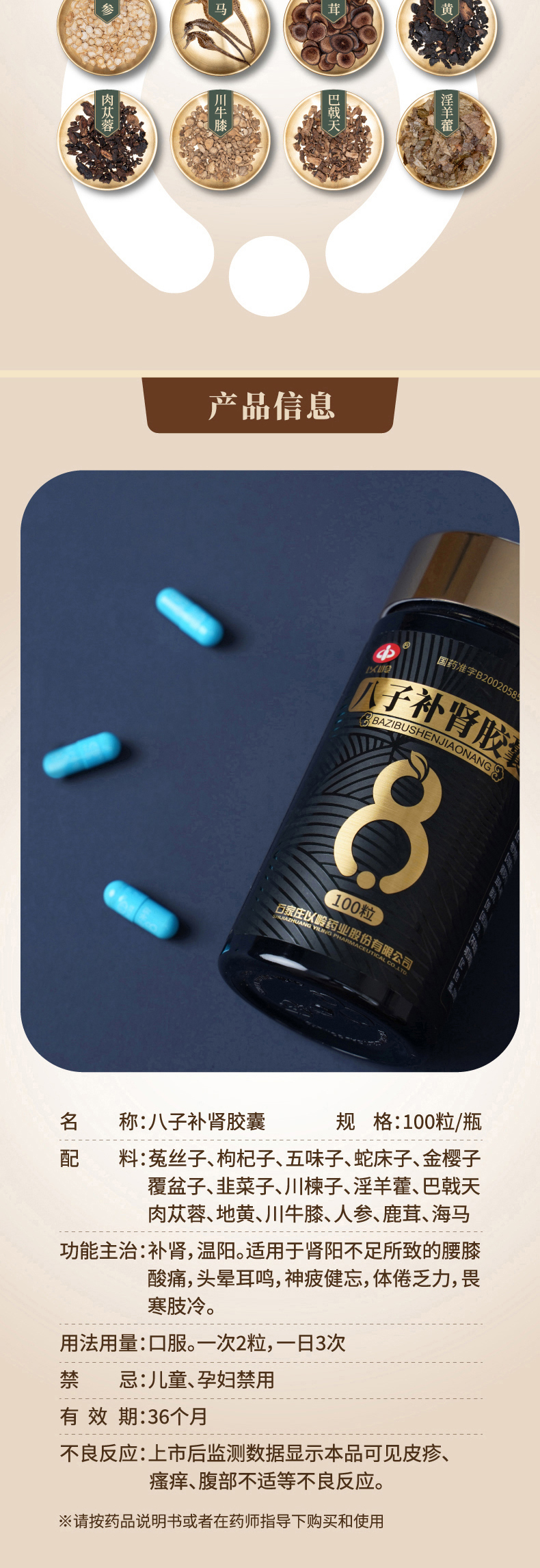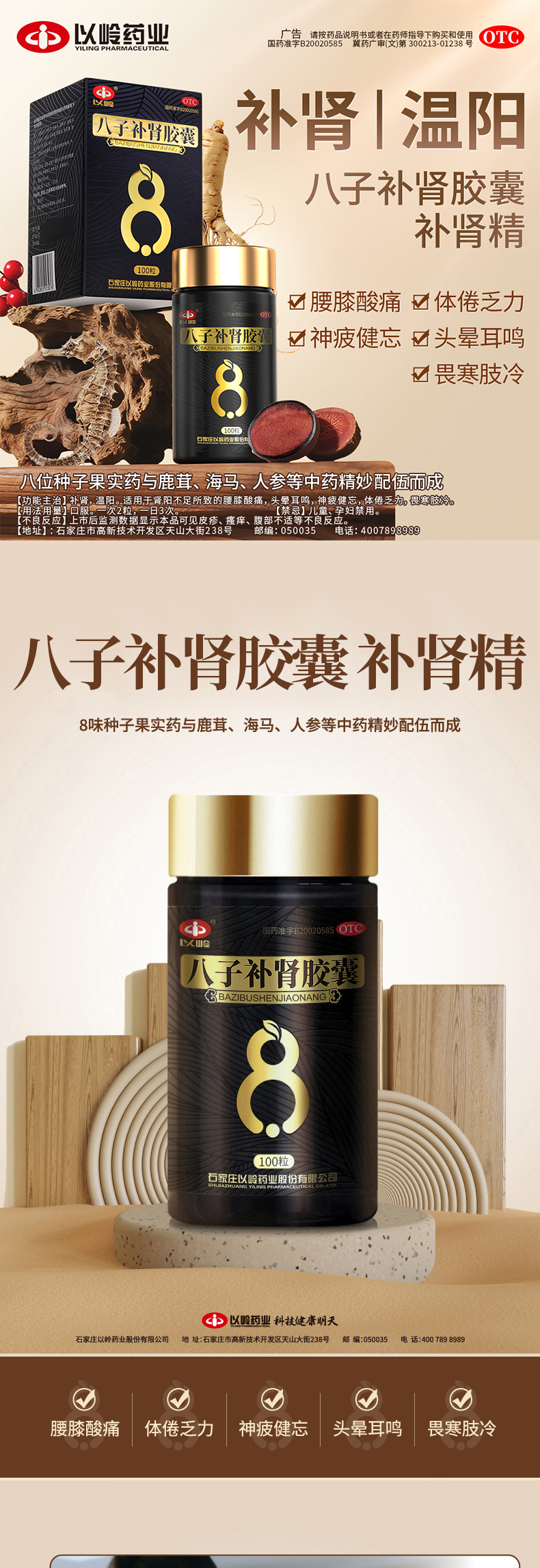 以岭 八子补肾胶囊礼盒 100粒*3 礼盒装 温阳补肾腰膝酸痛畏寒