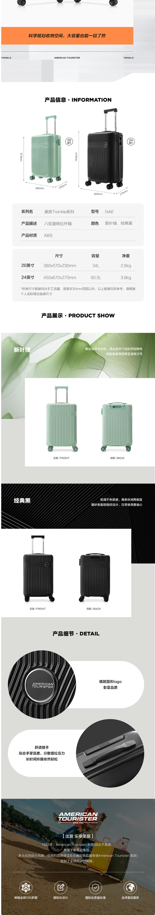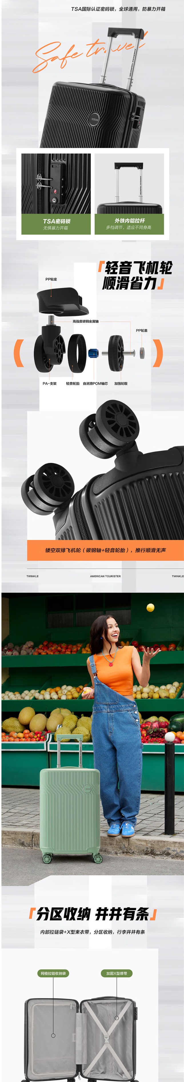 好物推荐】美旅 八轮旋转拉杆箱 M-24英寸 黑色 NA6*09002 品质生活 旅行户外