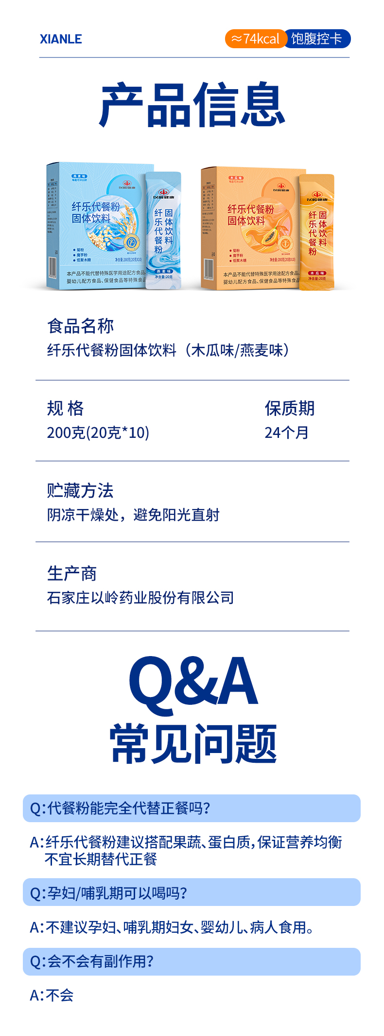 以岭健康纤乐代餐粉固体饮料(木瓜味)200克(20克X10)