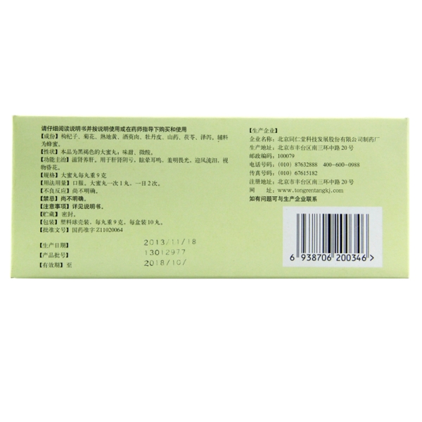 同仁堂 杞菊地黄丸 9g*10丸 滋肾养肝