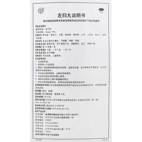 同仁堂 左归丸