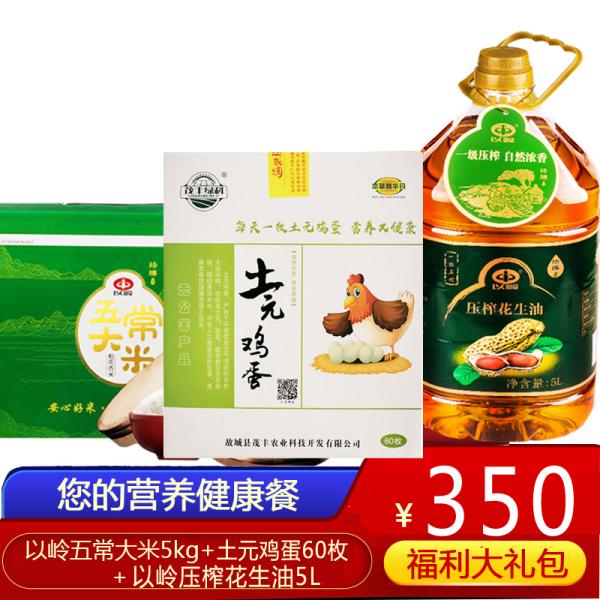 福利组合】以岭络膳五常大米稻花香米5kg+以岭压榨花生油5L+以岭土元鸡蛋60枚(预订款) 大米 油 鸡蛋 好物推荐