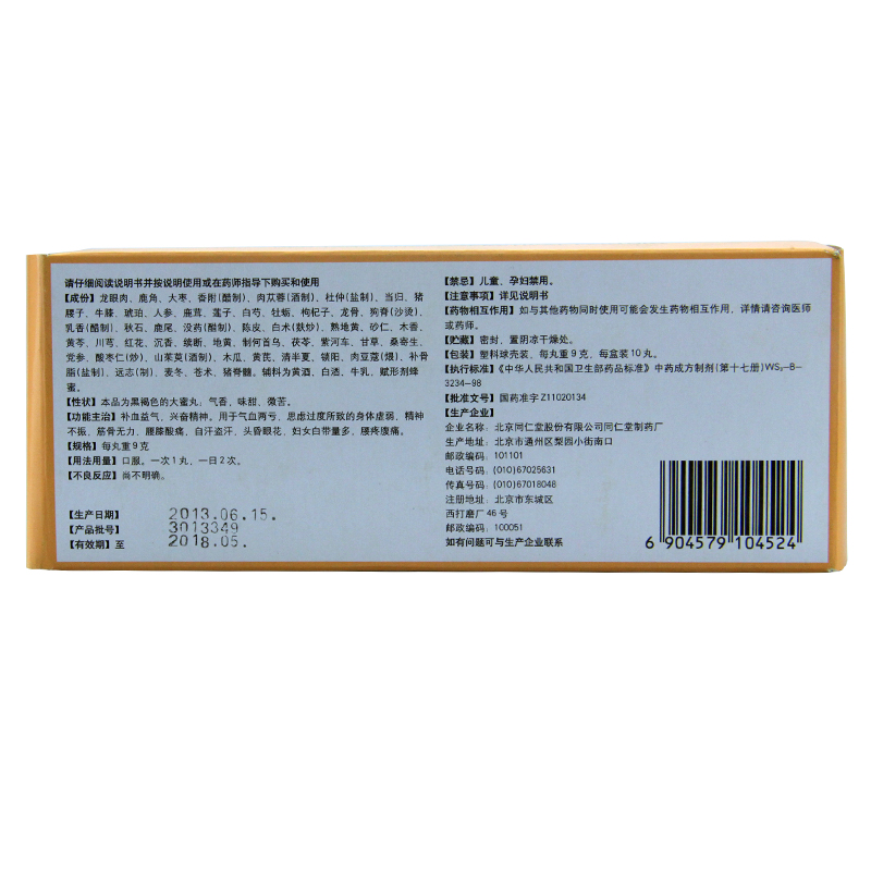同仁堂 参茸卫生丸 9g*10丸 补血益气