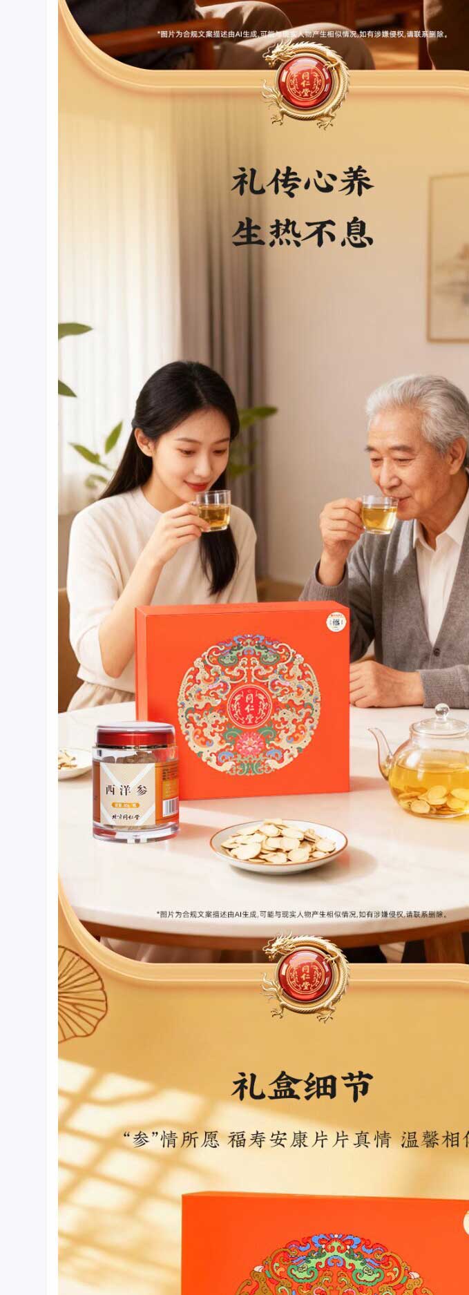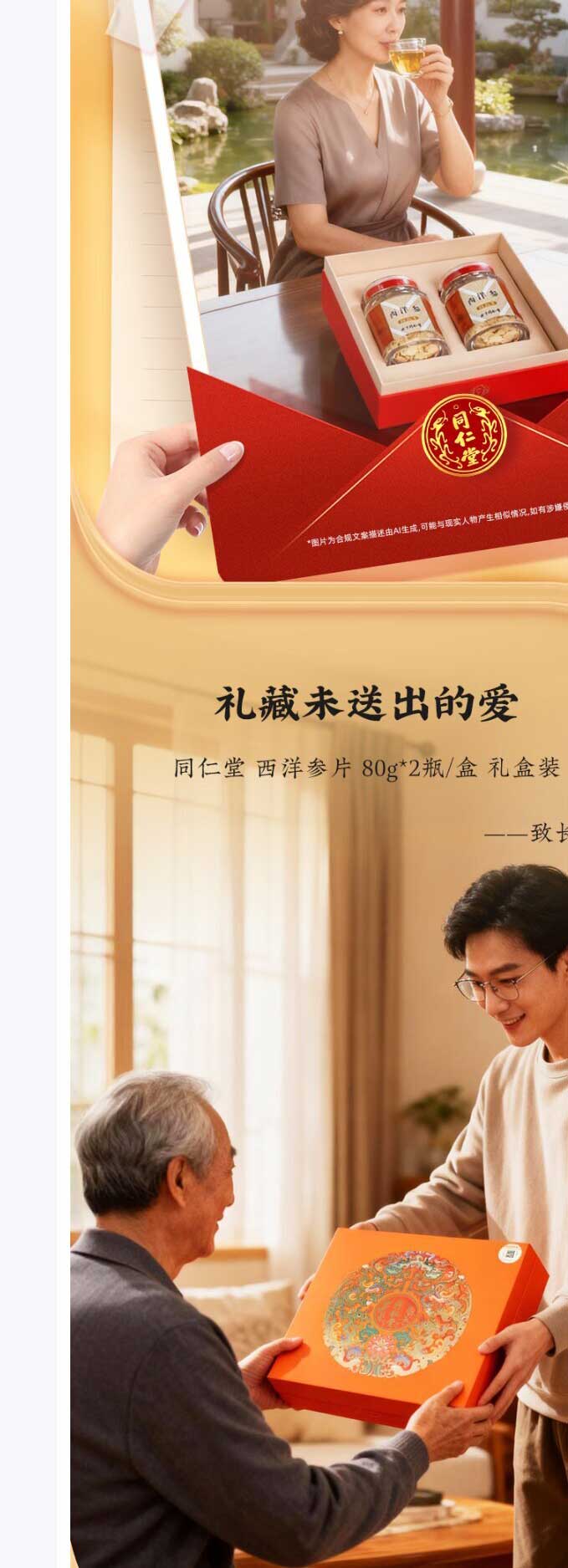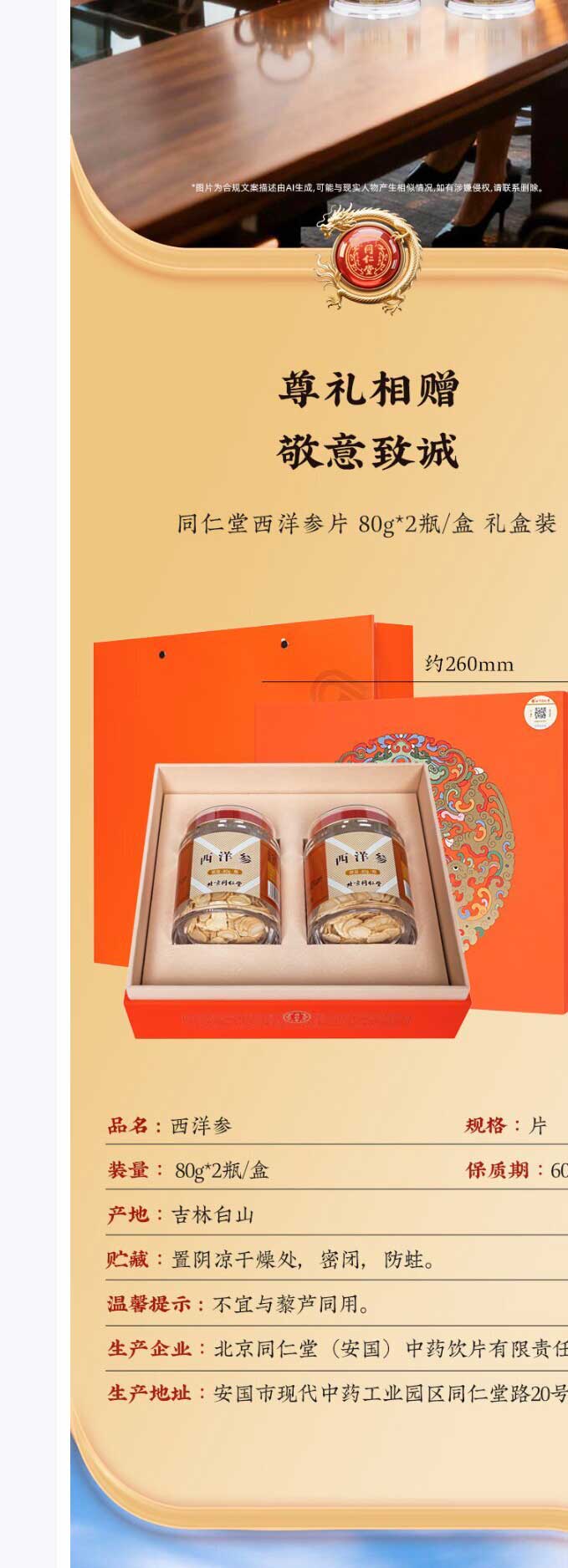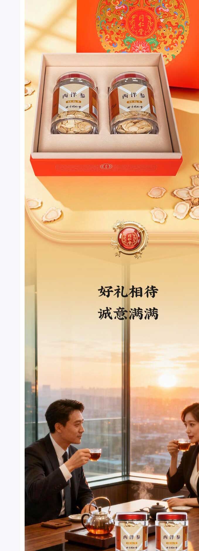 北京同仁堂西洋参切片正品80g*2瓶礼盒装泡水滋补煲汤送礼 年货礼盒推荐