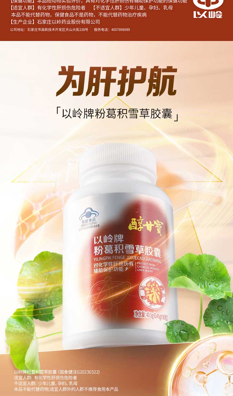 以岭牌 粉葛积雪草胶囊 40.5g(0.45g×90粒) 效期到2026年1月 介意者慎拍