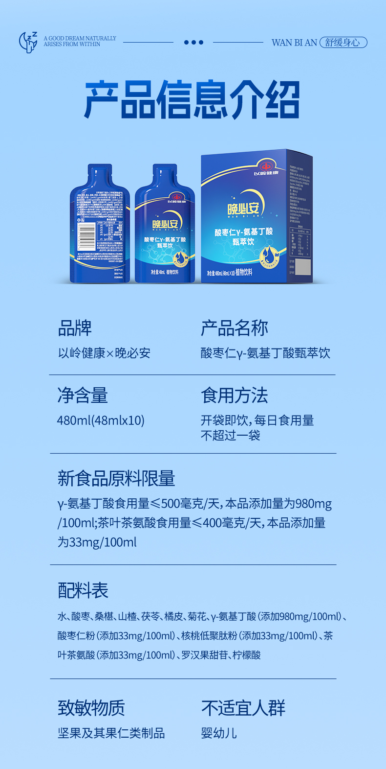 以岭 晚必安酸枣仁γ-氨基丁酸甄萃饮 48mL×10