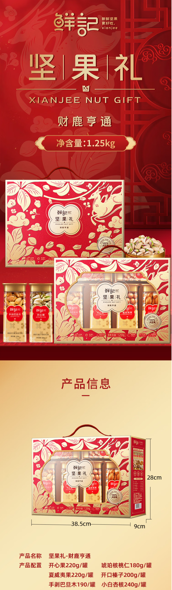 好物推荐】财鹿亨通坚果礼1.25kg 品质生活 零食 送礼 礼盒 年货礼盒推荐 健康零食