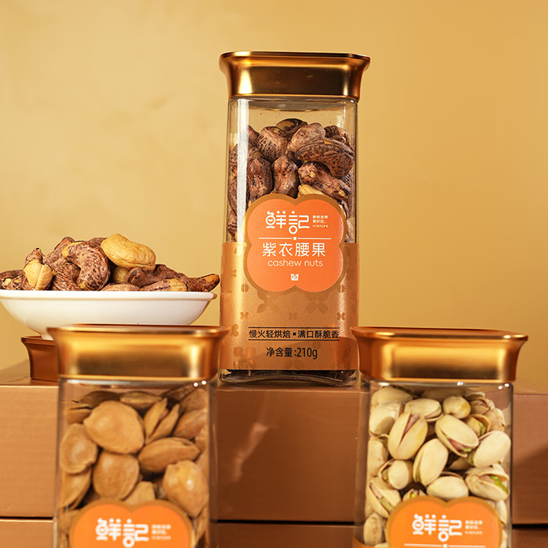 内含: "开心果220g 紫衣腰果210g 夏威夷果220g 开口榛子200g 碧根果190g 小白杏核240g"