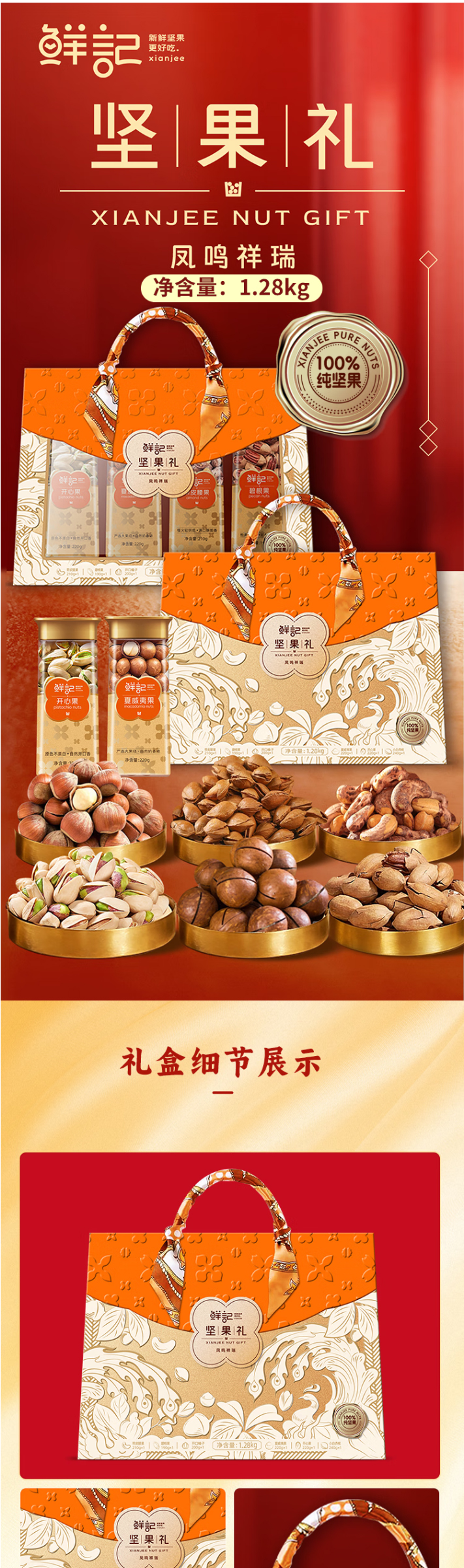 好物推荐】凤鸣祥瑞坚果礼1.28kg 品质生活 零食 坚果礼盒 送礼 年货礼盒推荐 健康零食