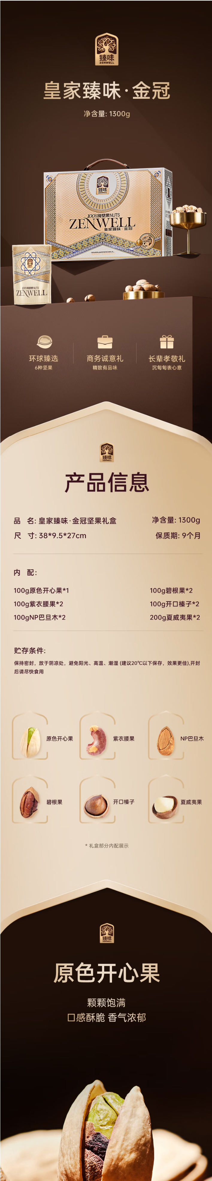 好物推荐】皇家臻味·1300g金冠坚果礼盒 品质生活 零食 送礼 年货礼盒推荐 健康零食