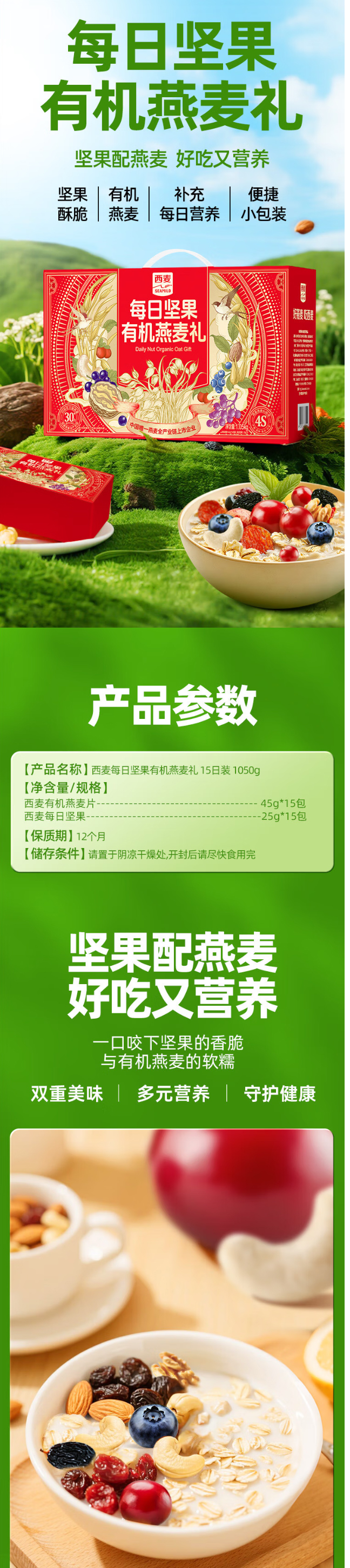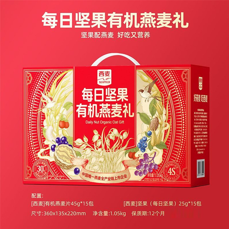 好物推荐】西麦 每日坚果 有机燕麦礼 1.05kg 年货礼盒推荐 健康零食