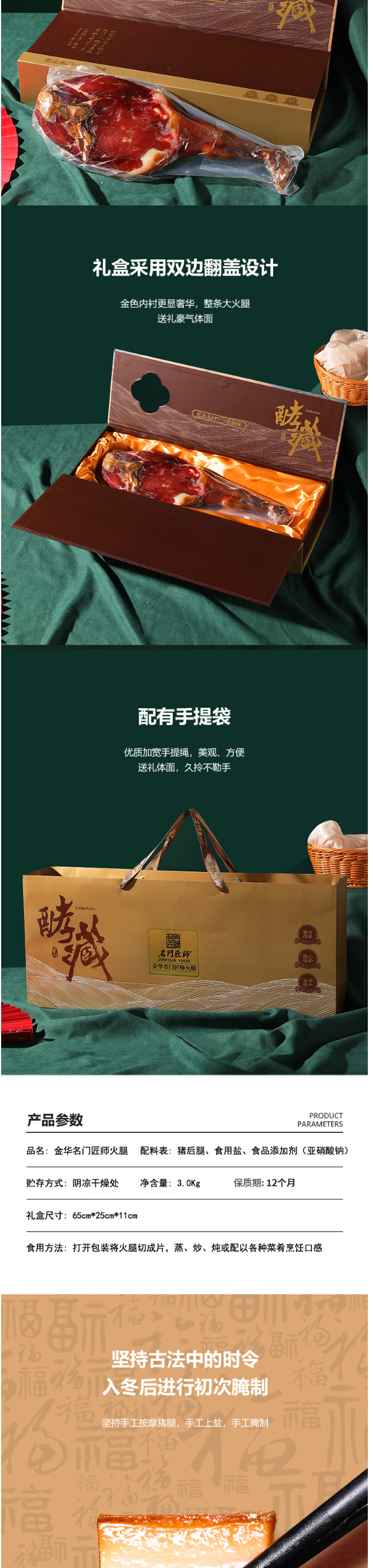 好物推荐】名门匠师 金华火腿 6斤整腿(酵藏)礼盒 年货礼盒推荐