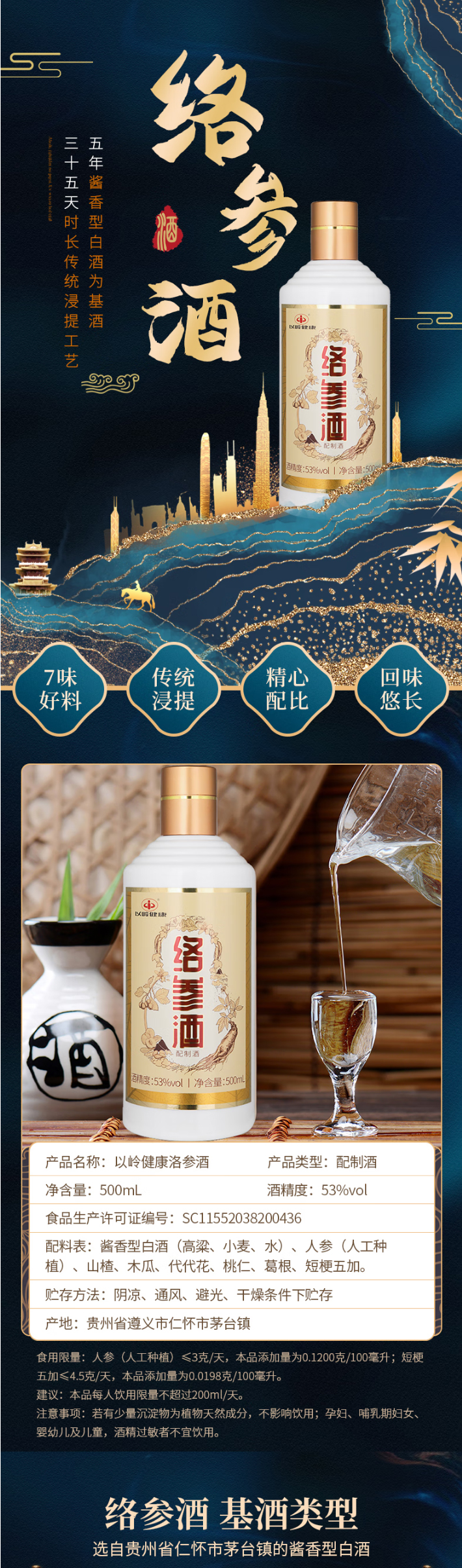 以岭健康 络参酒(配制酒)黄金版 500ml/瓶 年货礼盒 品质生活好物推荐