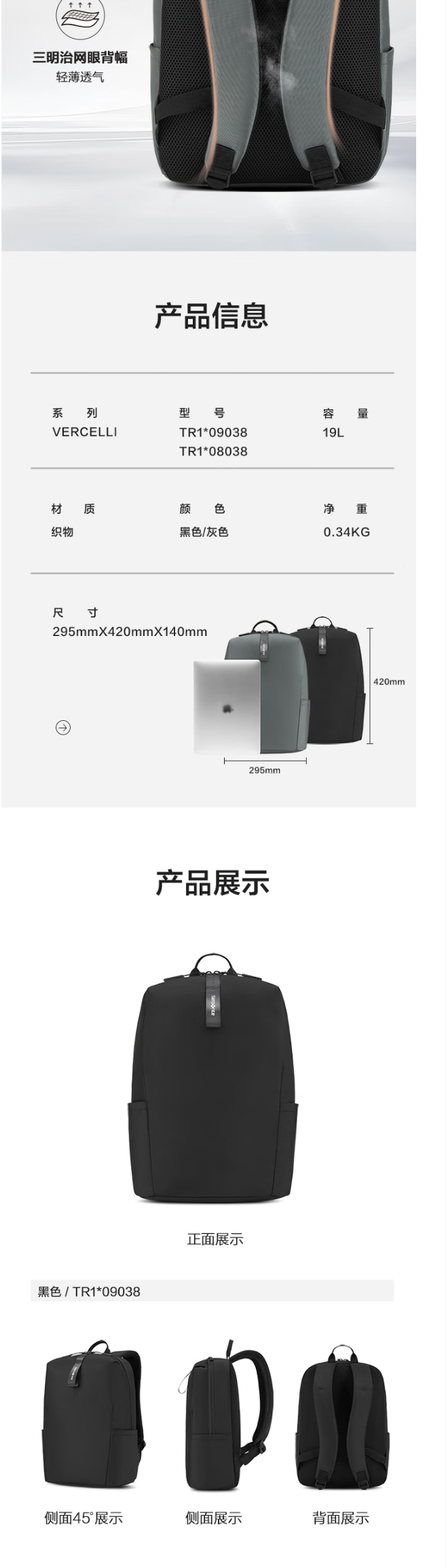 好物推荐】新秀丽 双肩包IX TR1*09038 黑色 健康生活家居 旅行户外