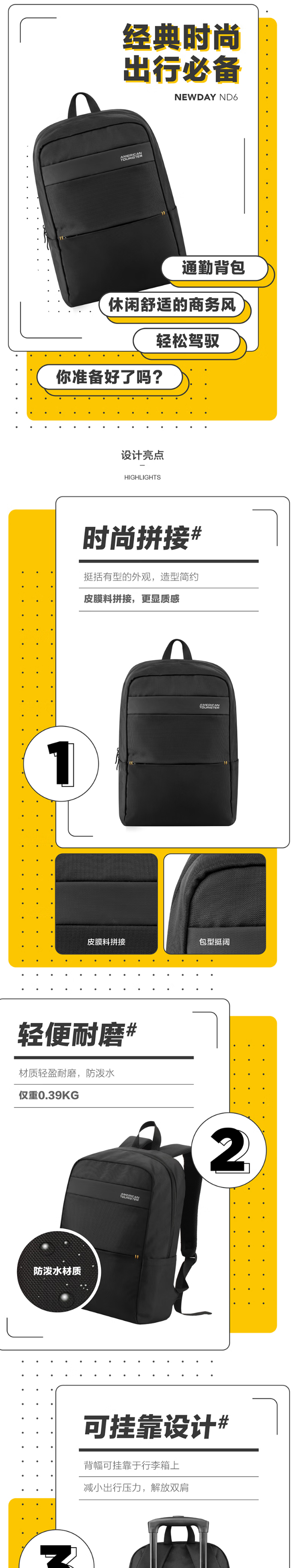 好物推荐】美旅 双肩包 ND6*09001 黑色 健康生活家居 旅行户外